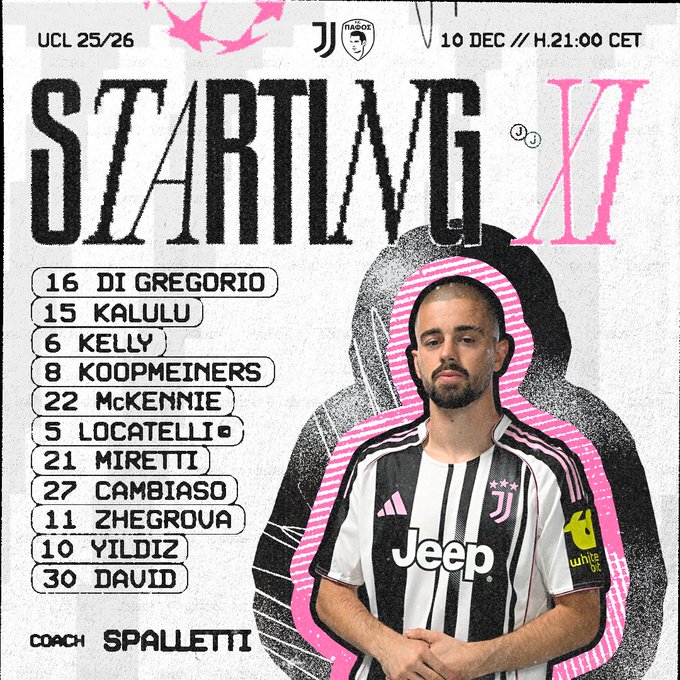 Juventus will host Pafos in the Champions League shortly, and this is the starting eleven selected by Luciano Spalletti.